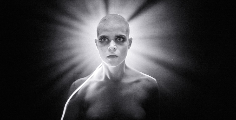 Towards the end of the story the transformation of the protagonist takes place. To make this clear, we also wanted to change the quality of the light. So far we have lit with tungsten. Now we wanted to create the light mainly through light rays and the use modern lamps. By moving the keys of an organ, the protagonist is brought to life with electricity. The luminous 'power line' consisted of a 5m long, cold white COB LED hose from LED Concept, which could also be dimmed wirelessly. The light output is enormous thanks to a continuous phosphor layer and extremely dense equipment with 480 LEDs / m and complemented itself perfectly with the light of the stage. In addition, we wanted to give the protagonist a crown of light. For this we have positioned a Robe Megapointe (with a static gobo) directly behind her at a distance of about 3 meters so that her body covers the lamp and it looks as if she herself is starting to shine. The electricity causes Bonny to tremble and her movements are supposed to blur. The inspiration comes from a scene from the film 'Jacobs Lader'. For this moment we increased the exposure time to a maximum in order to create as much motion blur as possible.